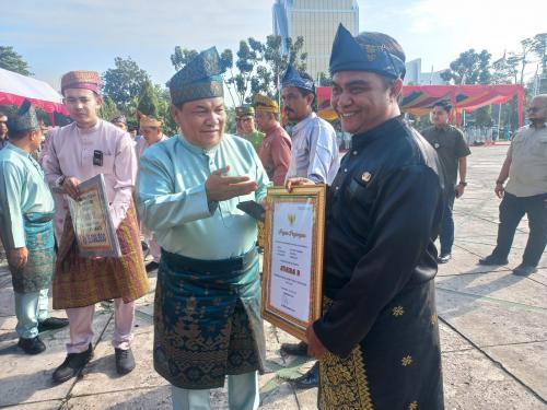 | Bengkalis | Jumat 14/11/2025, 08:18 WIB Terima Penghargaan dari Gubernur Riau Pejabat Kepala Desa Bantan Tengah, Hadi Suryono bersama pemerima pengharhagaan lainnya