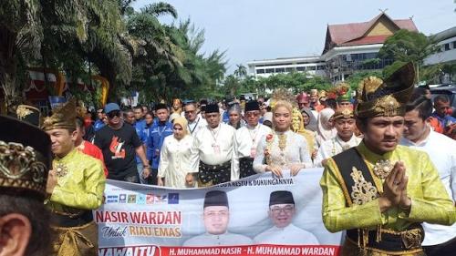Rabu, 28/08/2024 - 14:08:42 WIB PEKANBARU -- Sejumlah kesenian dari berbagai daerah di Indonesia ikut ramaikan pendaftaran pasangan bakal calon Gubernur dan Wakil Gubernur Riau Nasir-Wardan ke KPU Riau, Rabu (28/8/2024).Ribuan massa pendukung pasangan Nasir - Wardan tampak menunggu dan meramaikan Jalan Gajah Mada Pekanbaru. Pendukung terdiri dari kader partai pengusung, relawan...(read more)