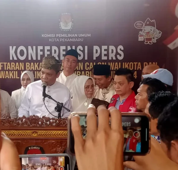 "Kami tadi rombongan hadir ke sini bersama tim partai pengusung yaitu Gerindra, PAN, PSI, Perindro, Gelora, Prima dan juga para relawan, simpatisan yang sama-sama tadi kami titik kumpul di MTQ tetap ramai sampai selesainya acara prosesi pendaftaran di KPU Pekanbaru ini," kata Uun dalam konferensi pers usai menyerahkan berkas persyaratan.