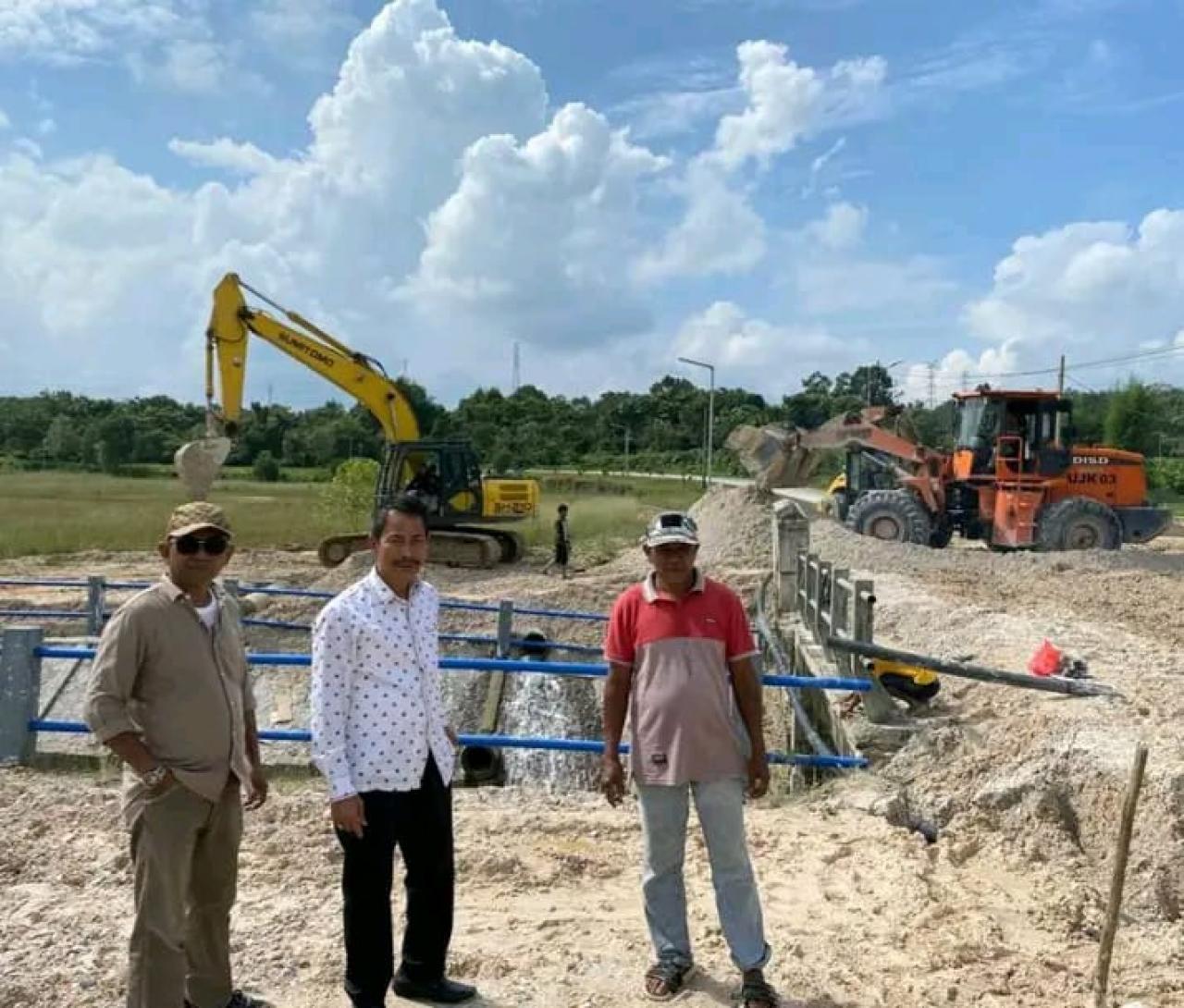 KAMPAR - Anggota DPRD Kampar Fraksi PPP Komisi IV Said Abdullah Meninjau Pembangunan Boox Colver Embung Sungai Sonsang Menuju Kantor Bupati dan DPRD Kampar yang amblas Beberapa Waktu lalu. Peninjauan langsung ini untuk melihat dari dekat kondisi dilapangan, Selasa,(2/1-2024).